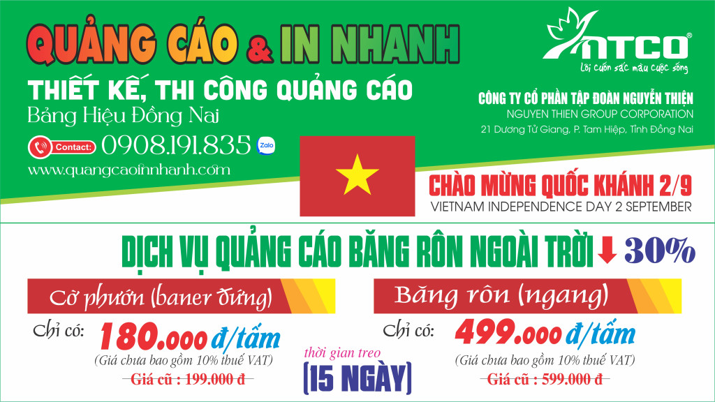 NTCO ƯU ĐÃI CHÀO MỪNG QUỐC KHÁNH 2/9 -2025 - Chương trình ưu đãi banner phướn đến hết ngày 31/12/2025