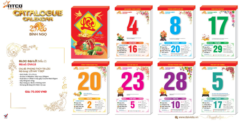 NTCO CUNG CẤP CÁC LOẠI LỊCH Năm Bính Ngọ 2026 - LỊCH BM - LỊCH DVA